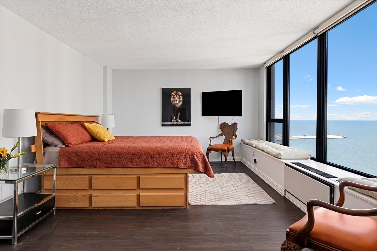Nestled in the heart of the historic Gold Coast, this beautiful 23rd floor 2-bedroom condo sits in the sunny southeast corner of the building and offers truly breathtaking views of the city skyline, the lakefront, and Navy Pier fireworks in the summer! This rare, combined double-unit offers a spacious open layout with a combo living room and dining area that is designed for both grand entertaining and everyday comfort. The bright white kitchen features a breakfast bar, stainless steel appliances, granite countertops, and a generous pantry. Just off the main room is a nice corner balcony for grilling, chilling, and relishing those sweeping views beyond. The oversized primary suite is a true retreat featuring a spa-like bathroom with a luxurious marble & glass shower, plus an indulgent, separate soaking tub. You'll also find a large walk-in closet with a convenient in-unit washer/dryer. Adjoining this bedroom is a dedicated den/office that's ideal for today's WFH lifestyle. The second nice-sized bedroom has a big closet and is right across the hall from a second lovely full bath. Notice there are hardwood floors in every room. This full-amenity building is pet-friendly, professionally managed, and offers 24-hour door staff, a fully equipped fitness room, a community room, a bike room, an outdoor pool, and a sun deck. Recent improvements to the building include remodeling of all the hallways and other common areas. A deeded parking space in the attached heated garage is available for an additional $30K. And even though there is abundant storage in the unit, there are also two large, dedicated storage lockers included. A full-service salon and day spa, as well as a good dry cleaner, are located on-site for added convenience. 1313 N. Ritchie Ct. is perfectly positioned just one block from the lakefront with its running and biking paths, across the street from popular Goudy Park, and just steps to public transportation and the world-class dining, nightlife, and shopping of the Magnificent Mile and Old Town. WalkScore gives this location a 96 rating and calls it a "Walker's Paradise!"